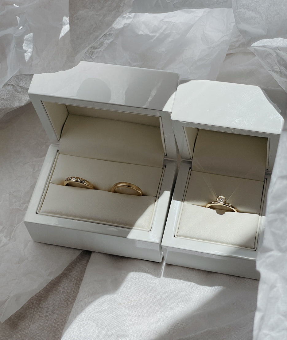 A high polished finish, the most common finish on jewellery, makes the surface of a special piece very shiny and reflective. As all of our special pieces are designed for daily wear, your ring will gain some fine little scratches over time. The mirror-like finish will wear to a natural worn finish as it develops its own patina. However, this can easily be re-polished to return your piece to its original shine.