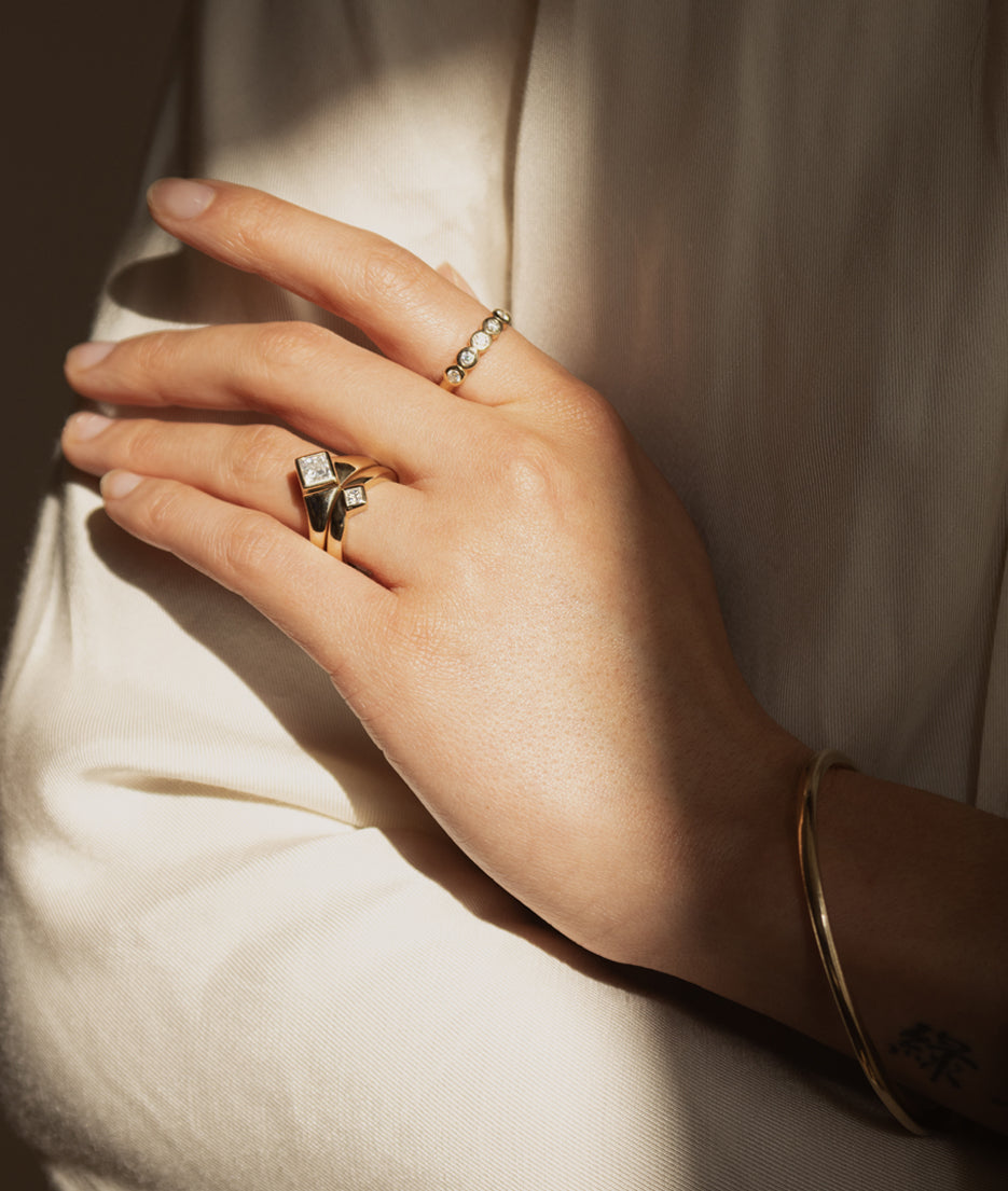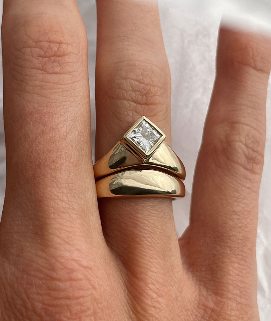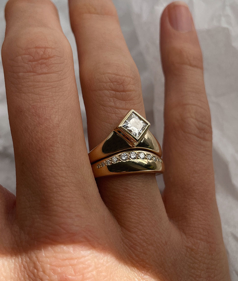 All of our pieces are made to order and we embrace and celebrate the subtle variations that make each item unique. Slight variations in band widths, thicknesses, and stone settings add to our organic style and are reflective of the hand finished nature of each piece