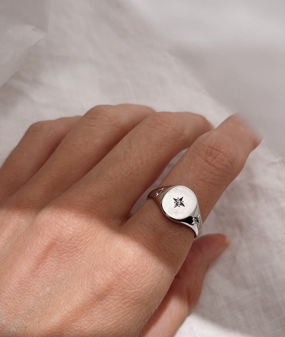 Hand carved Small Signet ring, made to order in solid Gold and featuring 3 star-set stones.