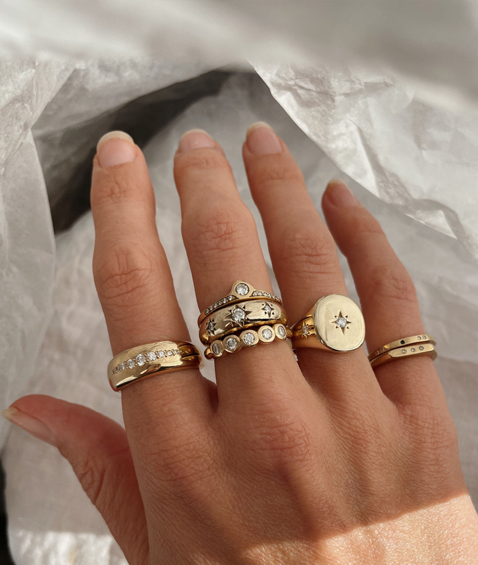 A high polished finish, the most common finish on jewellery, makes the surface of a special piece very shiny and reflective. As all of our special pieces are designed for daily wear, your ring will gain some fine little scratches over time. The mirror-like finish will wear to a natural worn finish as it develops its own patina. However, this can easily be re-polished to return your piece to its original shine.