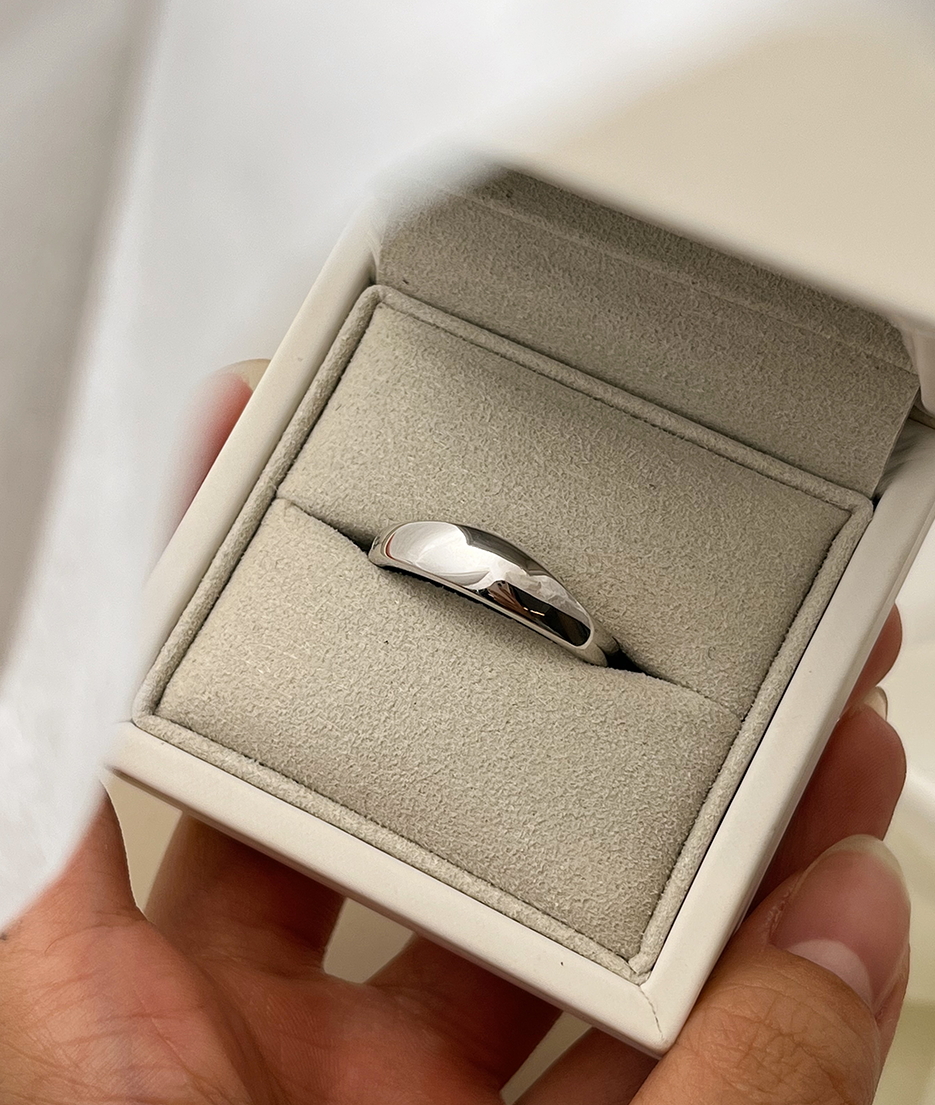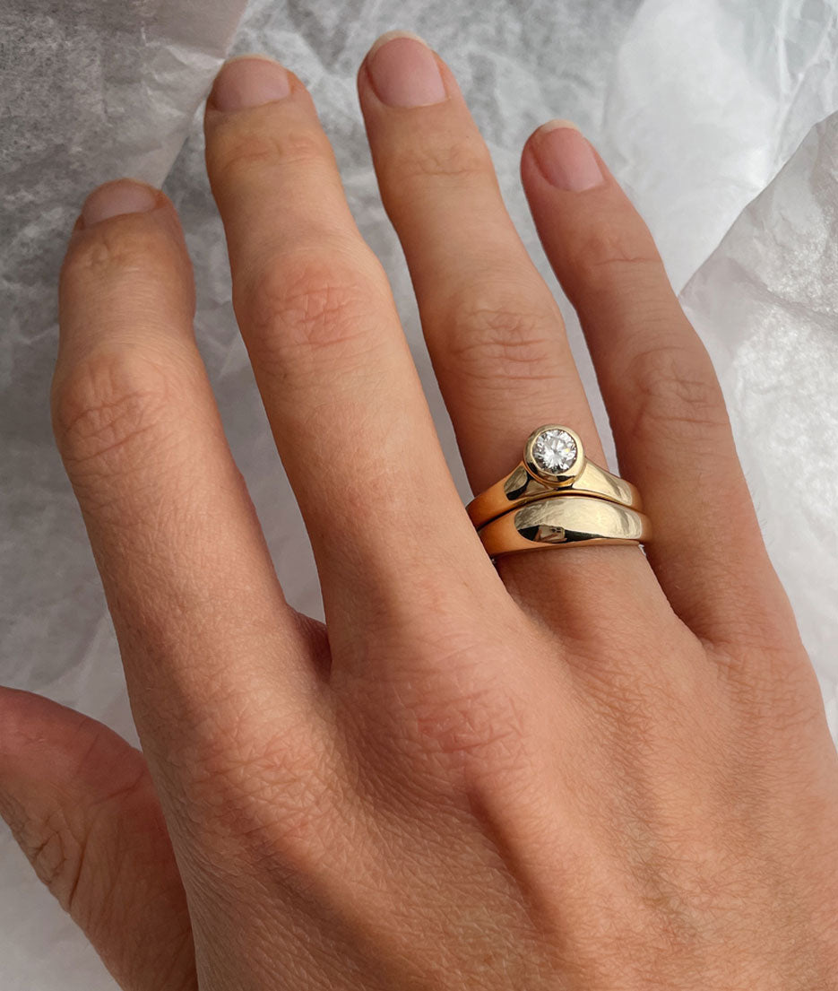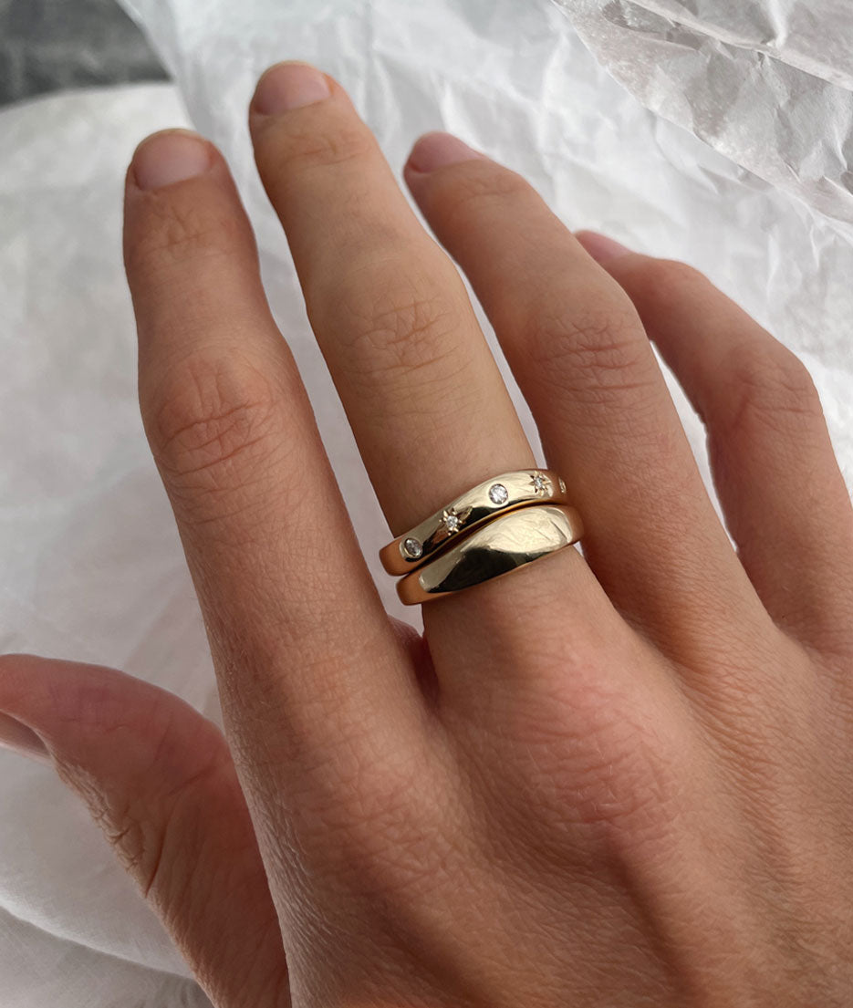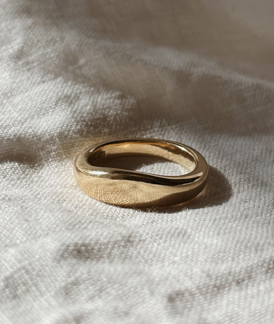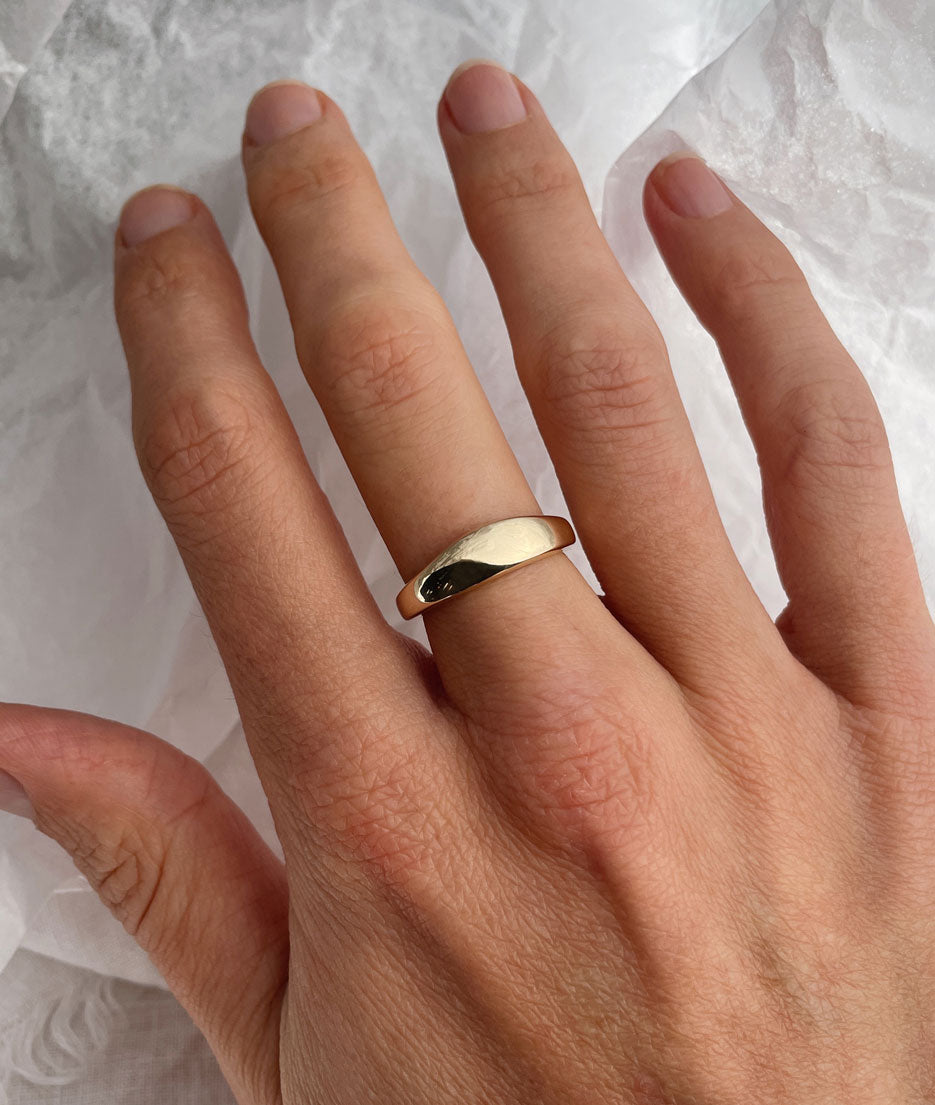 A high polished finish, the most common finish on jewellery, makes the surface of a special piece very shiny and reflective. As all of our special pieces are designed for daily wear, your ring will gain some fine little scratches over time. The mirror-like finish will wear to a natural worn finish as it develops its own patina. However, this can easily be re-polished to return your piece to its original shine.