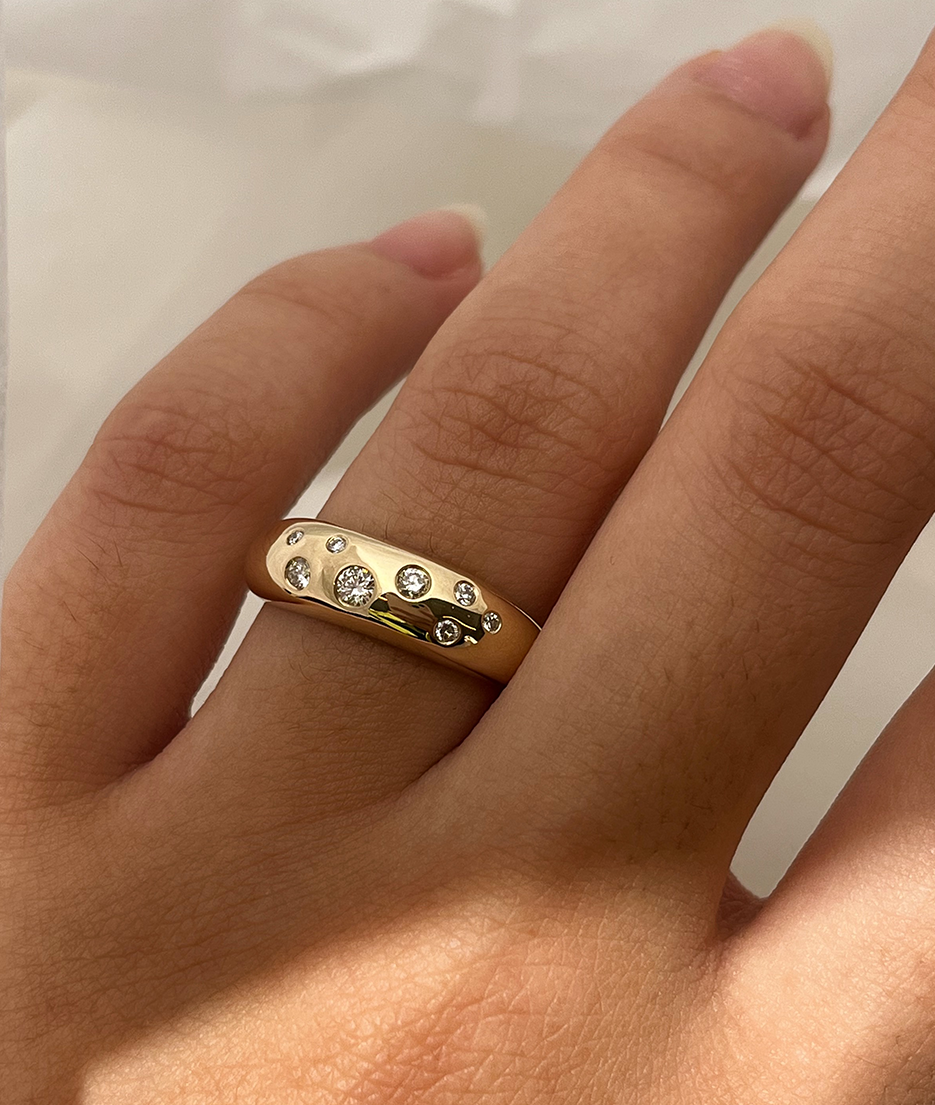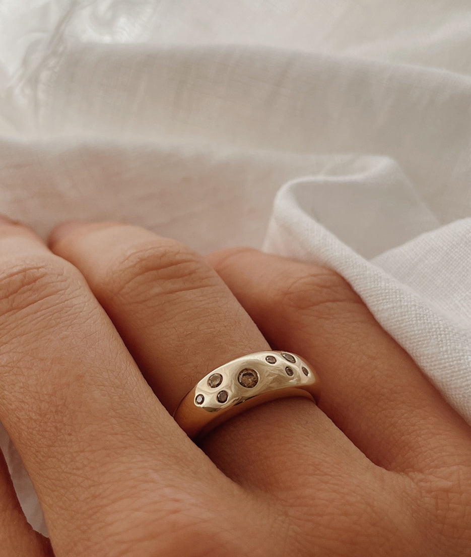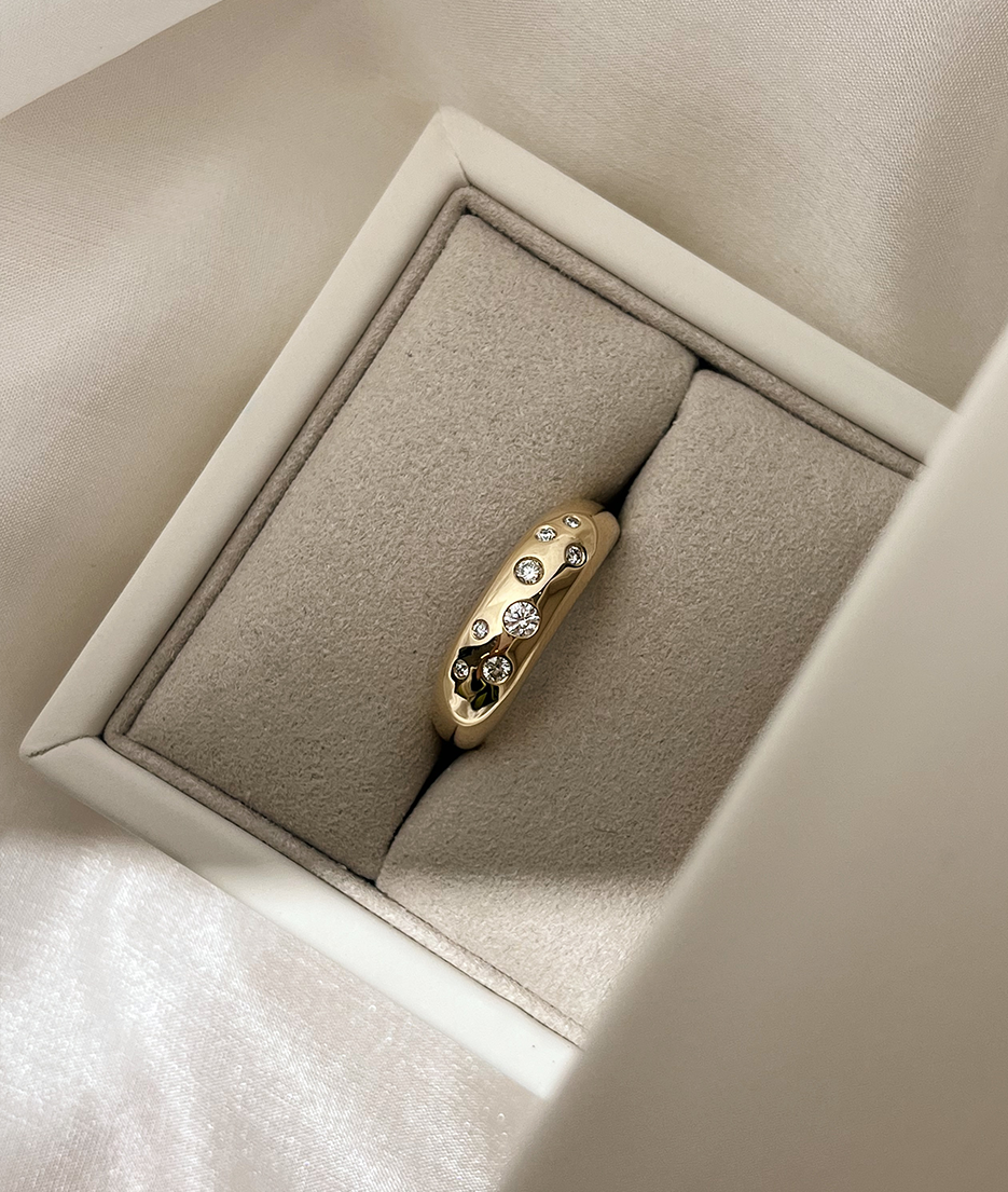 Our Wide Organic ring featuring a small galaxy of brilliant Clear Diamonds.