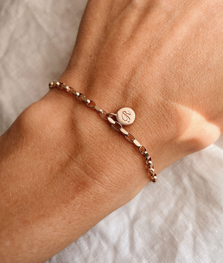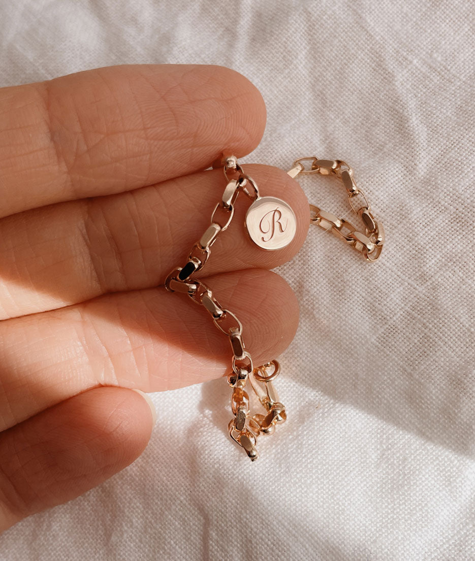 This bracelet chain can be worn as a solo piece or layered with other chain bracelets.
