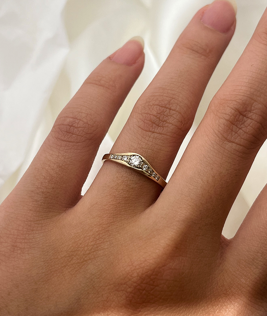 A high polished finish, the most common finish on jewellery, makes the surface of a special piece very shiny and reflective. As all of our special pieces are designed for daily wear, your ring will gain some fine little scratches over time. The mirror-like finish will wear to a natural worn finish as it develops its own patina. However, this can easily be re-polished to return your piece to its original shine.