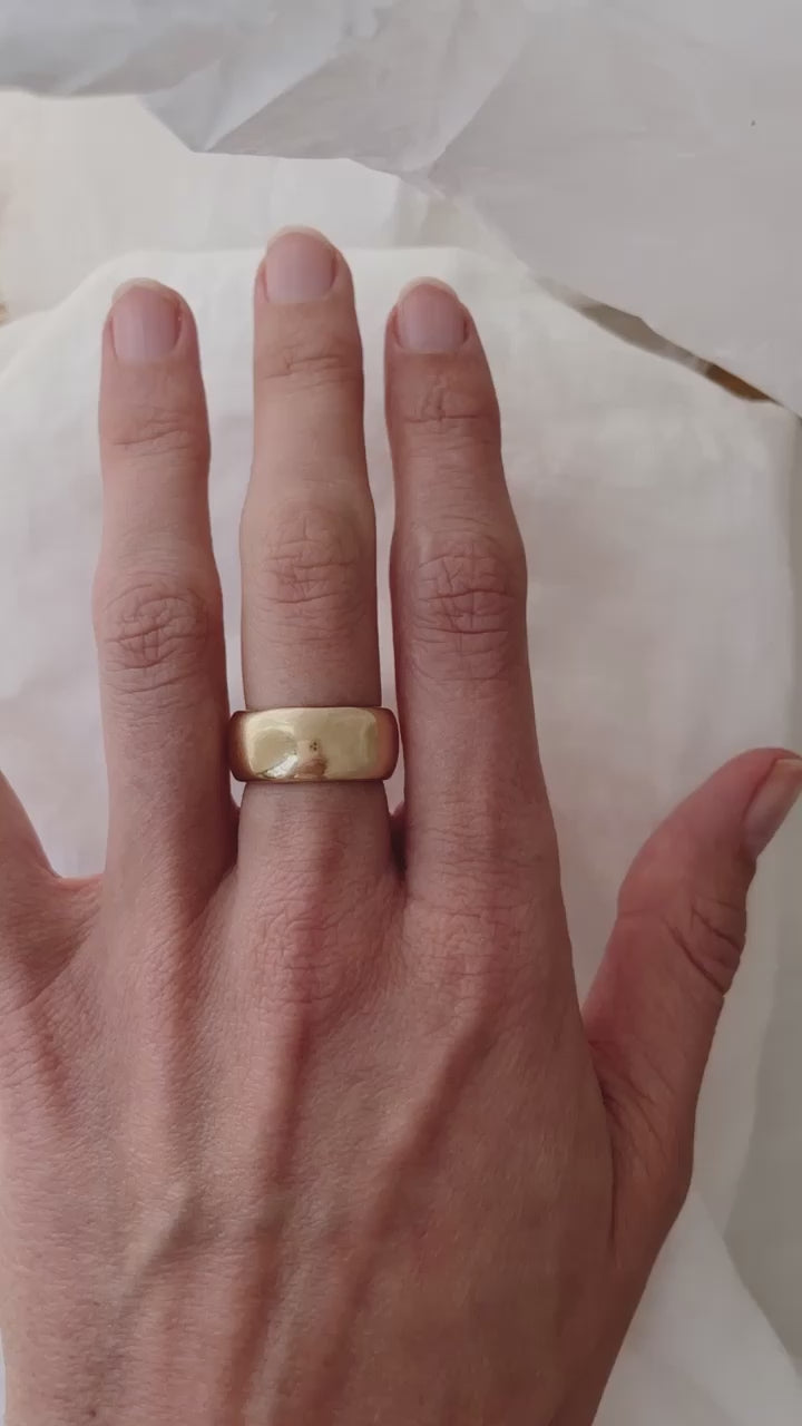 Sizing note: Please note as this is a very wide band without a taper, you'll need to check your ring size accordingly. In most cases, this will mean ordering 1-1.5 sizes larger than your usual ring size.
