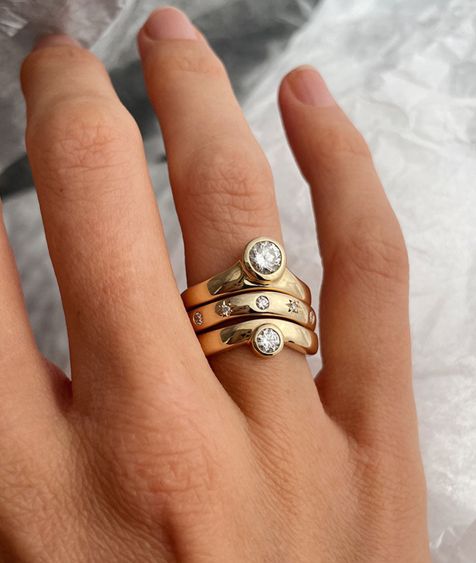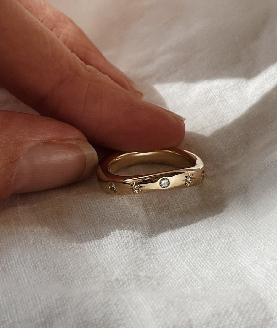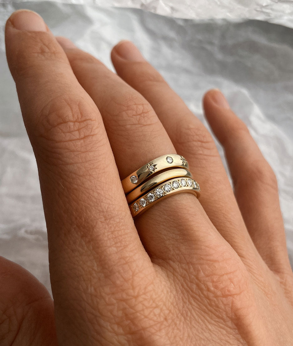 Stones: 2 x 1.25mm star set and 3 x 2mm flush set natural Diamonds or select your favourite stones from the dropdown menu above