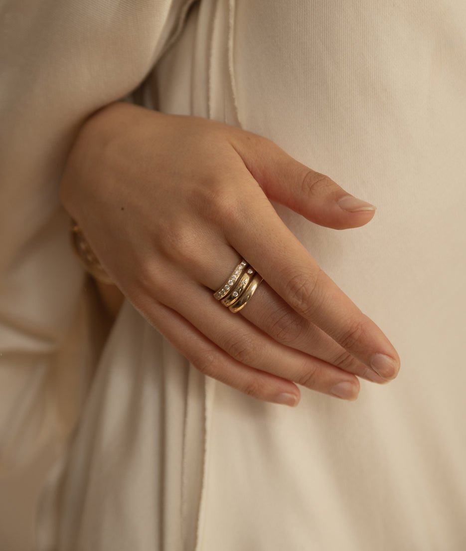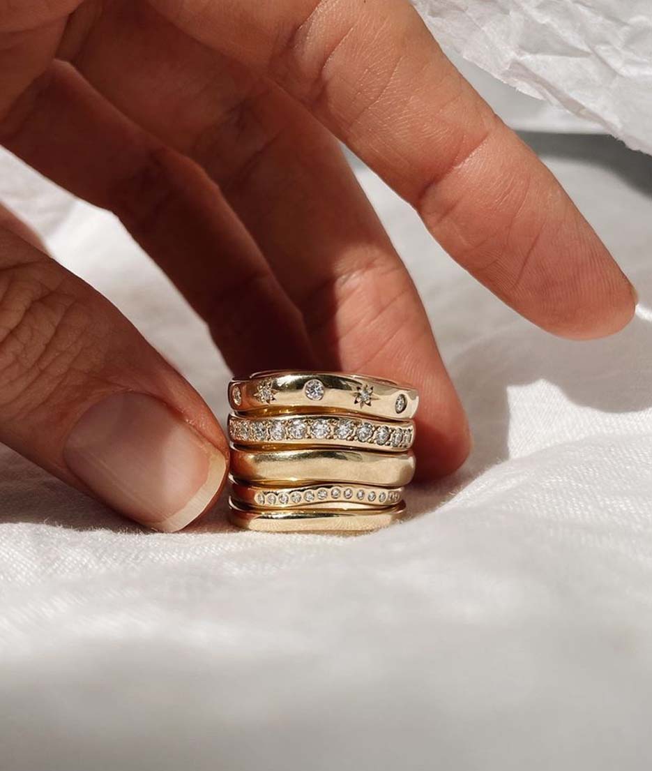 All of our pieces are made to order and we embrace and celebrate the subtle variations that make each item unique. Slight variations in band widths, thicknesses, and stone settings add to our organic style and are reflective of the hand finished nature of each piece