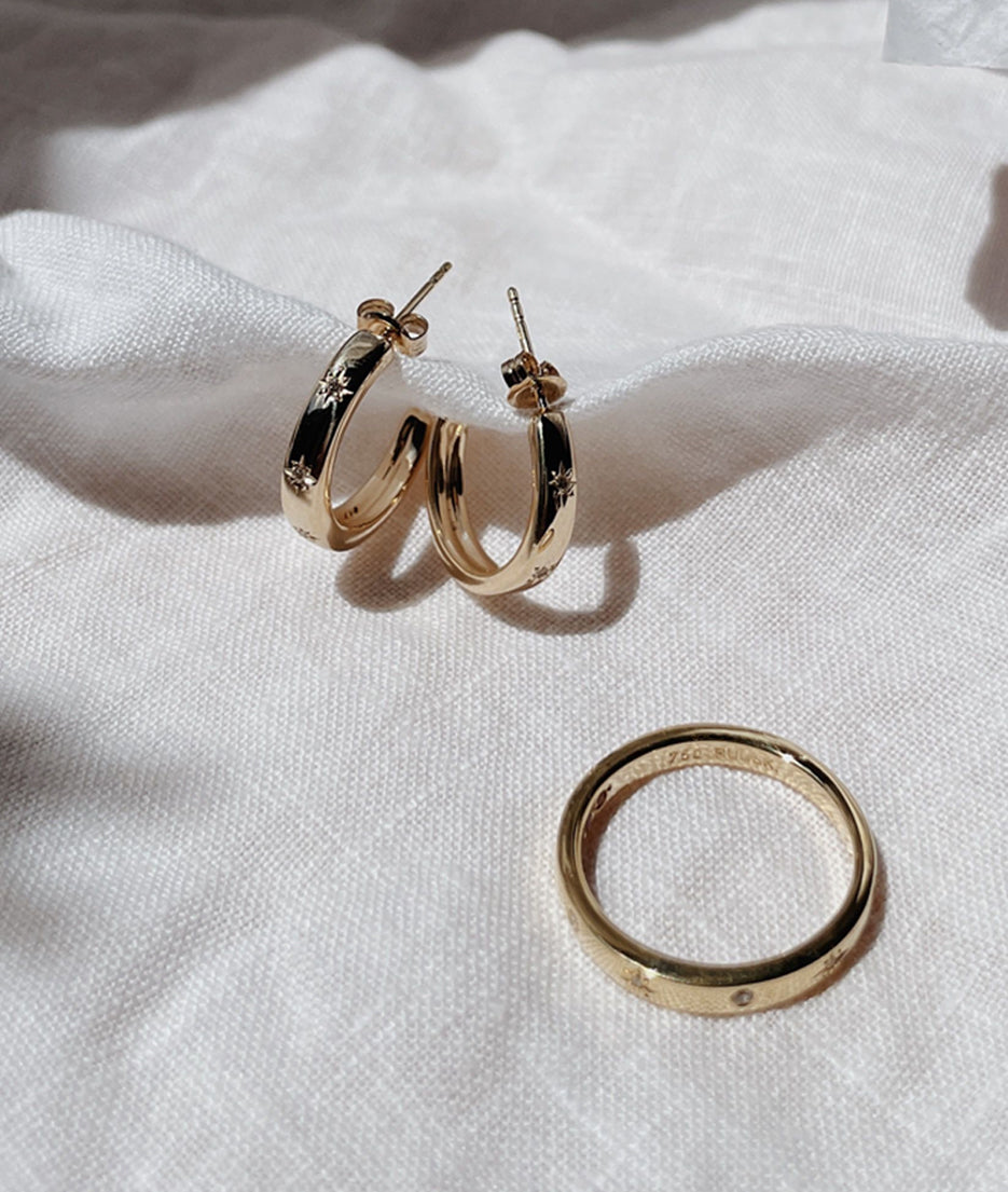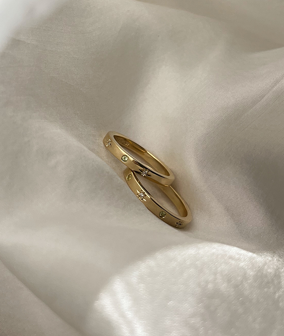 All of our pieces are made to order and we embrace and celebrate the subtle variations that make each item unique. Slight variations in band widths, thicknesses, and stone settings add to our organic style and are reflective of the hand finished nature of each piece.
