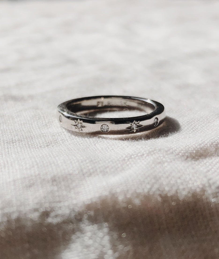 Stones: 1mm star set and 1.5mm flush set natural Diamonds or select your favourite stones from the dropdown menu above