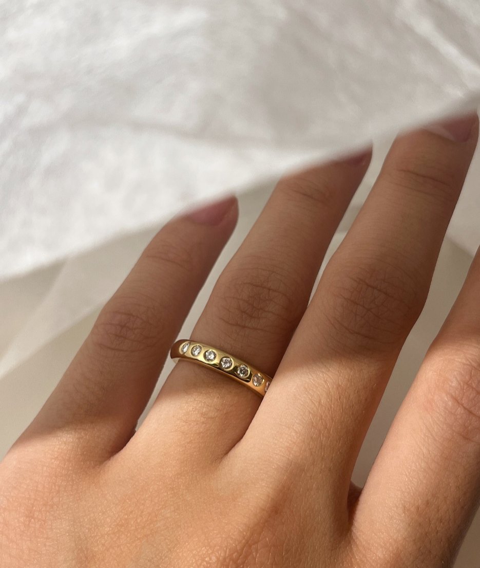 All of our pieces are made to order and we embrace and celebrate the subtle variations that make each item unique. Slight variations in band widths, thicknesses, and stone settings add to our organic style and are reflective of the hand finished nature of each piece