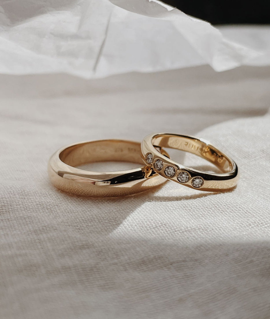 A high polished finish, the most common finish on jewellery, makes the surface of a special piece very shiny and reflective. As all of our special pieces are designed for daily wear, your ring will gain some fine little scratches over time. The mirror-like finish will wear to a natural worn finish as it develops its own patina. However, this can easily be re-polished to return your piece to its original shine.