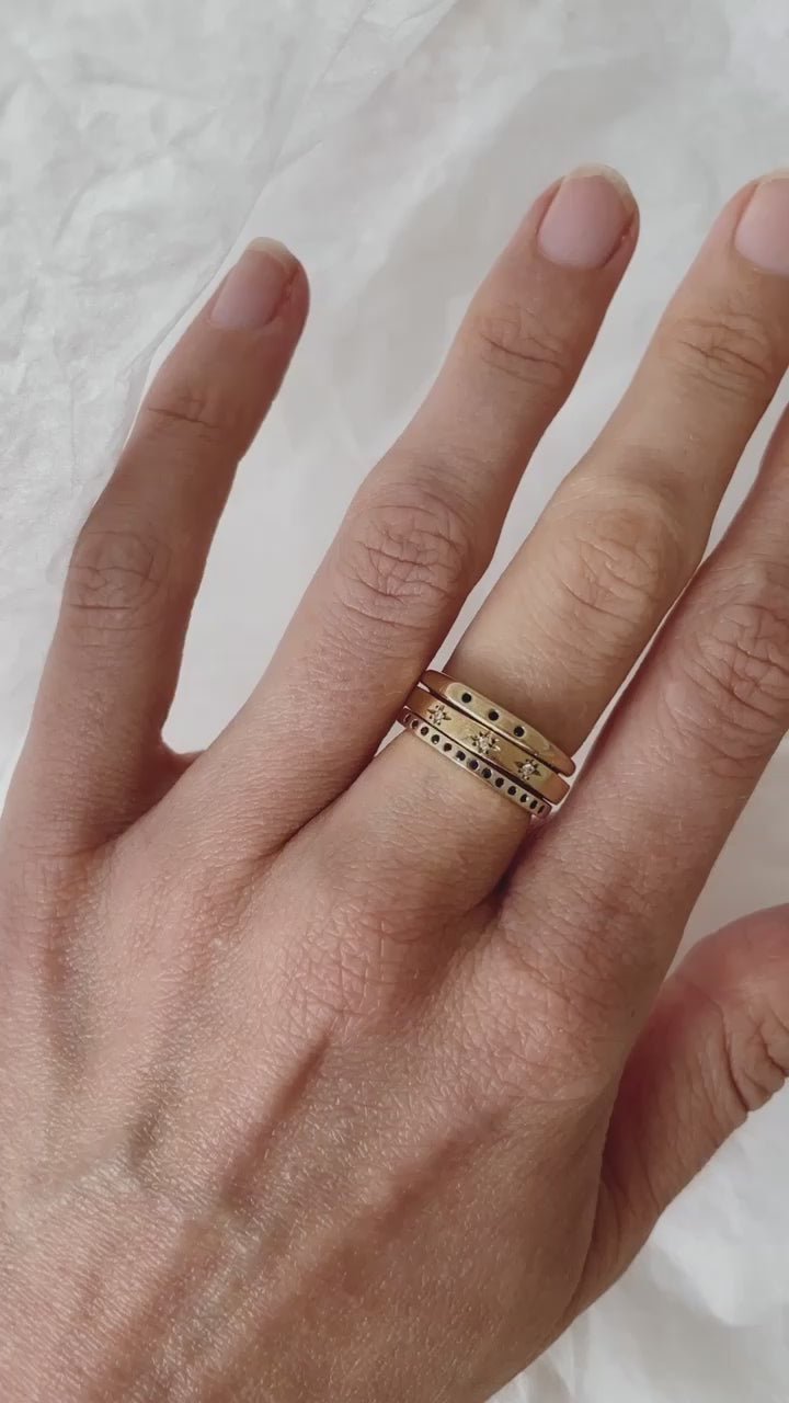 All of our pieces are made to order and we embrace and celebrate the subtle variations that make each item unique. Slight variations in band widths, thicknesses, and stone settings add to our organic style and are reflective of the hand finished nature of each piece.