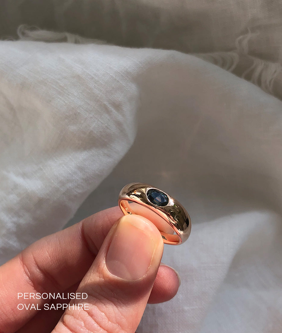 A high polished finish, the most common finish on jewellery, makes the surface of a special piece very shiny and reflective. As all of our special pieces are designed for daily wear, your ring will gain some fine little scratches over time. The mirror-like finish will wear to a natural worn finish as it develops its own patina. However, this can easily be re-polished to return your piece to its original shine.