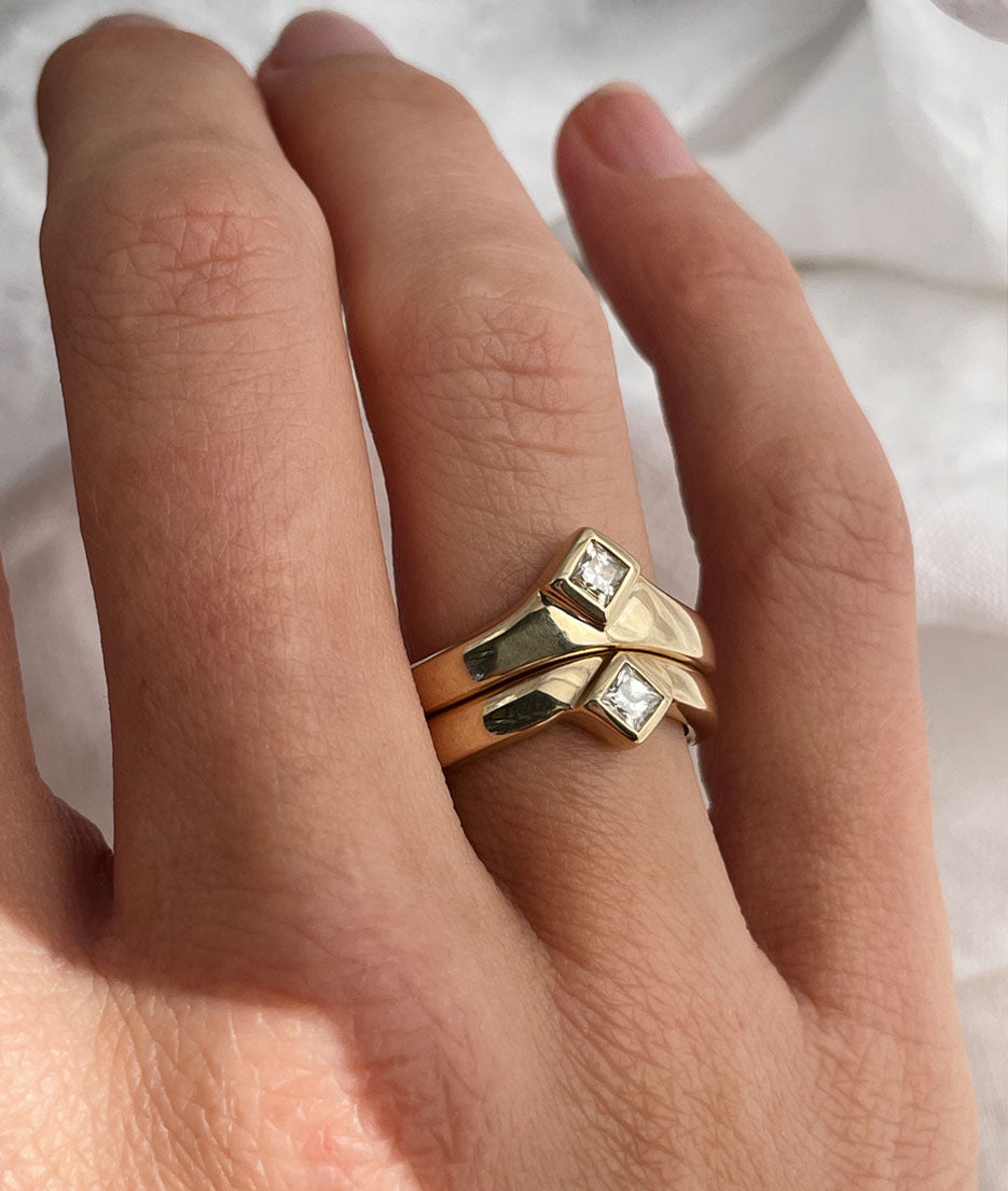 All of our pieces are made to order and we embrace and celebrate the subtle variations that make each item unique. Slight variations in band widths, thicknesses, and stone settings add to our organic style and are reflective of the hand finished nature of each piece