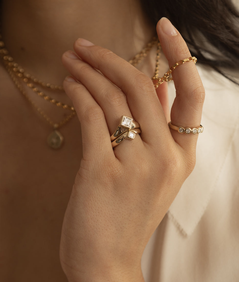 All of our pieces are made to order and we embrace and celebrate the subtle variations that make each item unique. Slight variations in band widths, thicknesses, and stone settings add to our organic style and are reflective of the hand finished nature of each piece