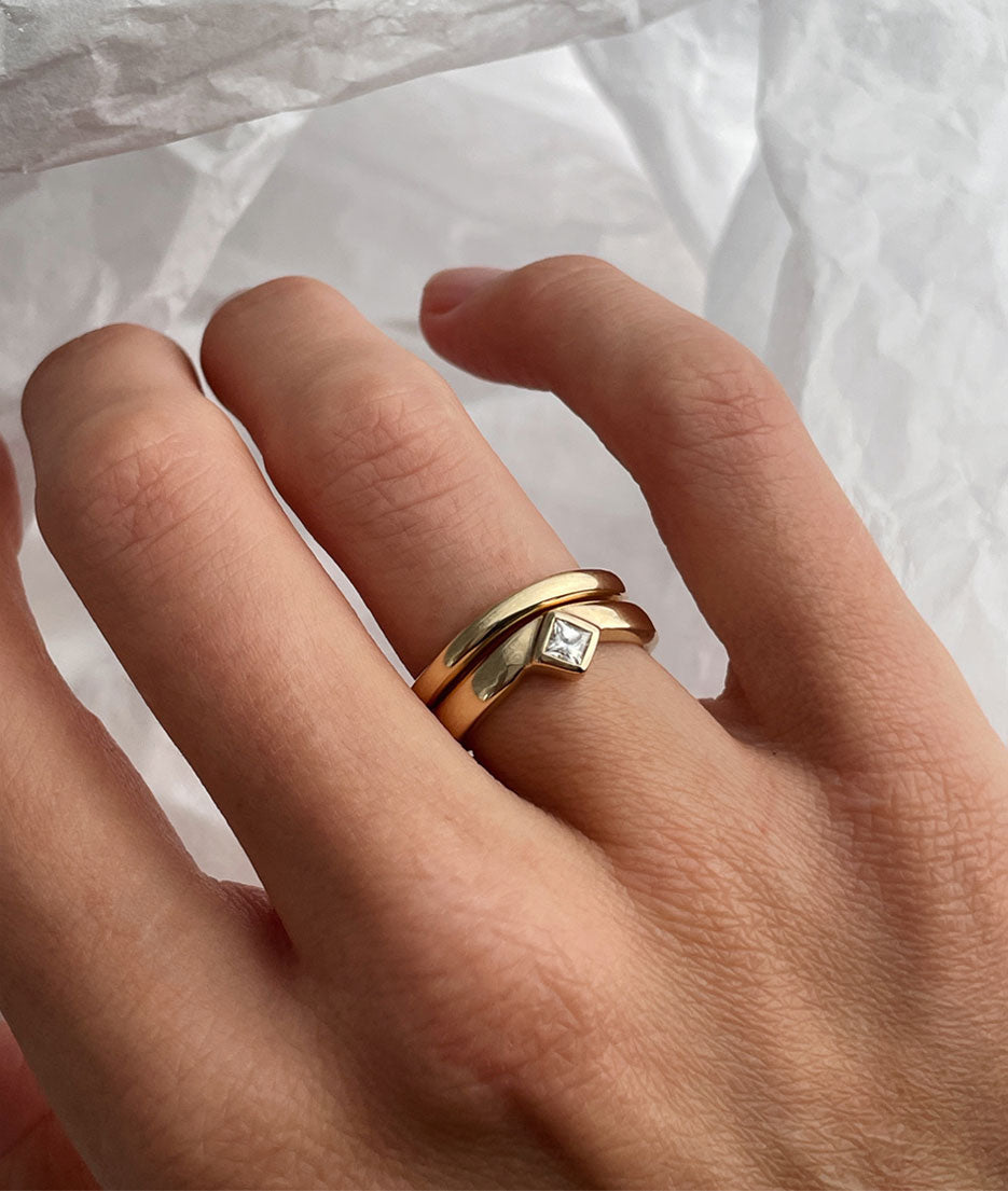A high polished finish, the most common finish on jewellery, makes the surface of a special piece very shiny and reflective. As all of our special pieces are designed for daily wear, your ring will gain some fine little scratches over time. The mirror-like finish will wear to a natural worn finish as it develops its own patina. However, this can easily be re-polished to return your piece to its original shine.