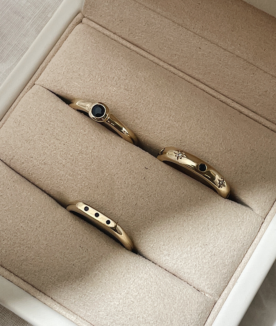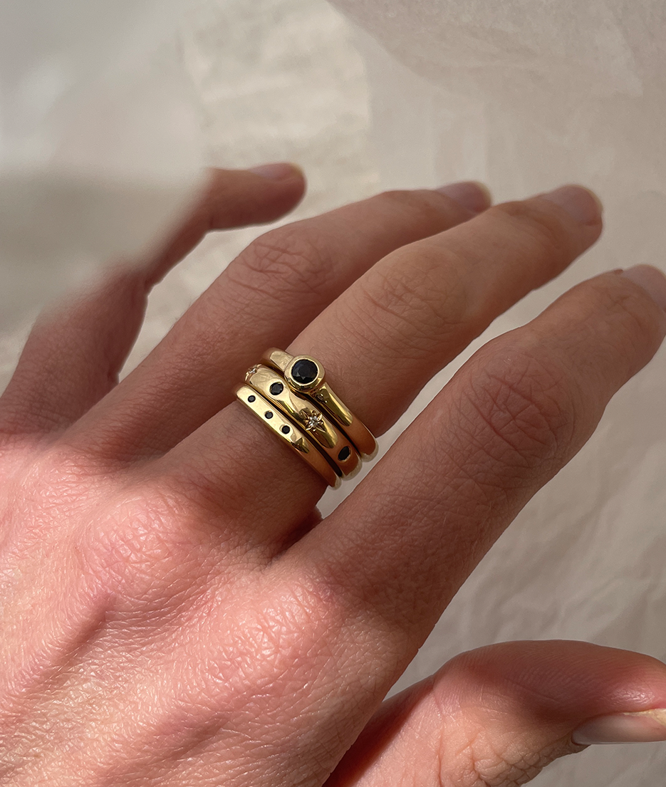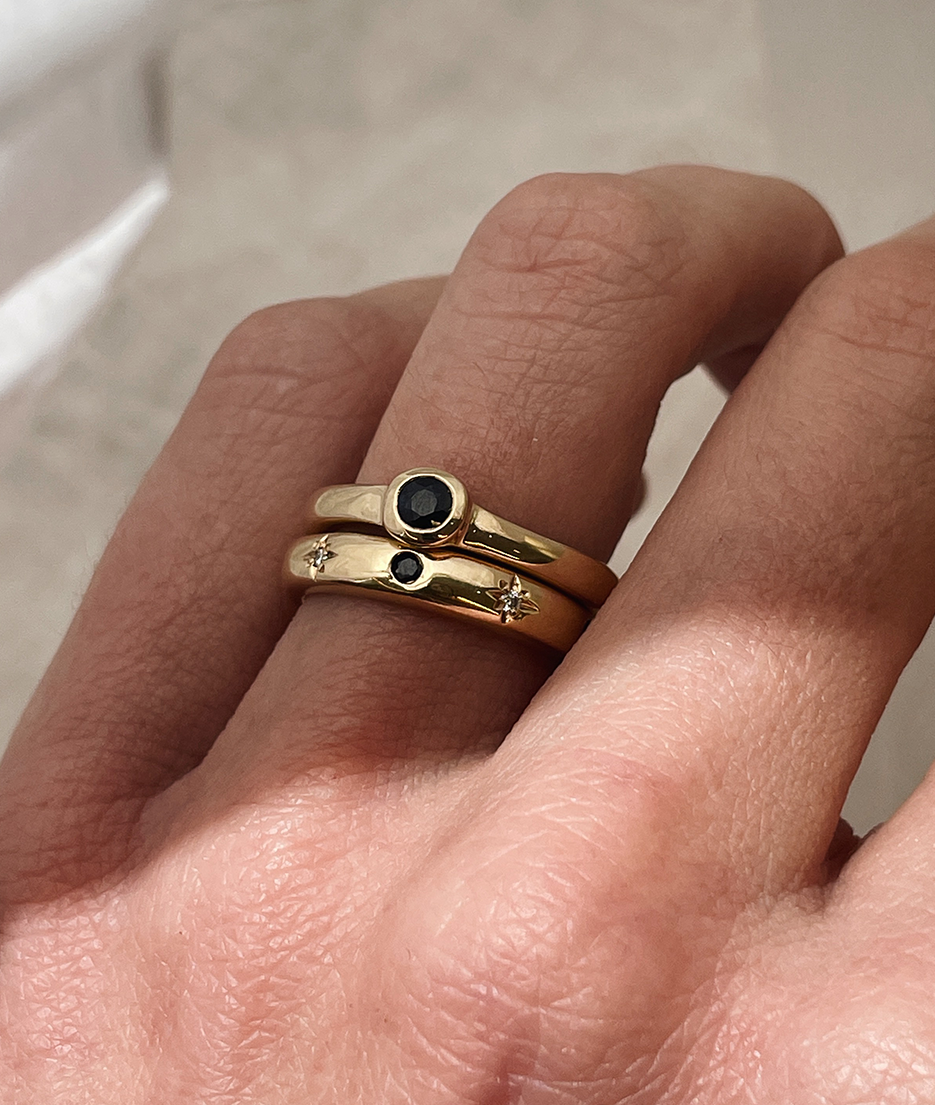 All of our pieces are made to order and we embrace and celebrate the subtle variations that make each item unique. Slight variations in band widths, thicknesses, and stone settings add to our organic style and are reflective of the hand finished nature of each piece