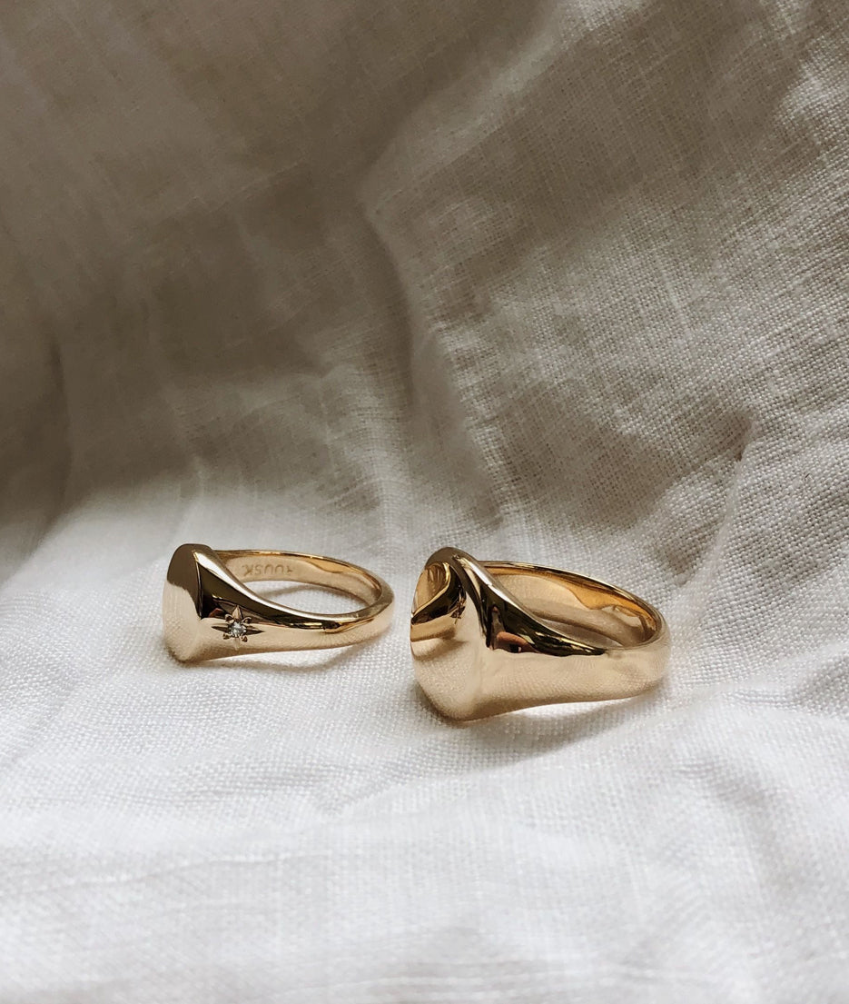 Hand carved Small Signet ring, made to order in solid Gold and featuring a star set stone.