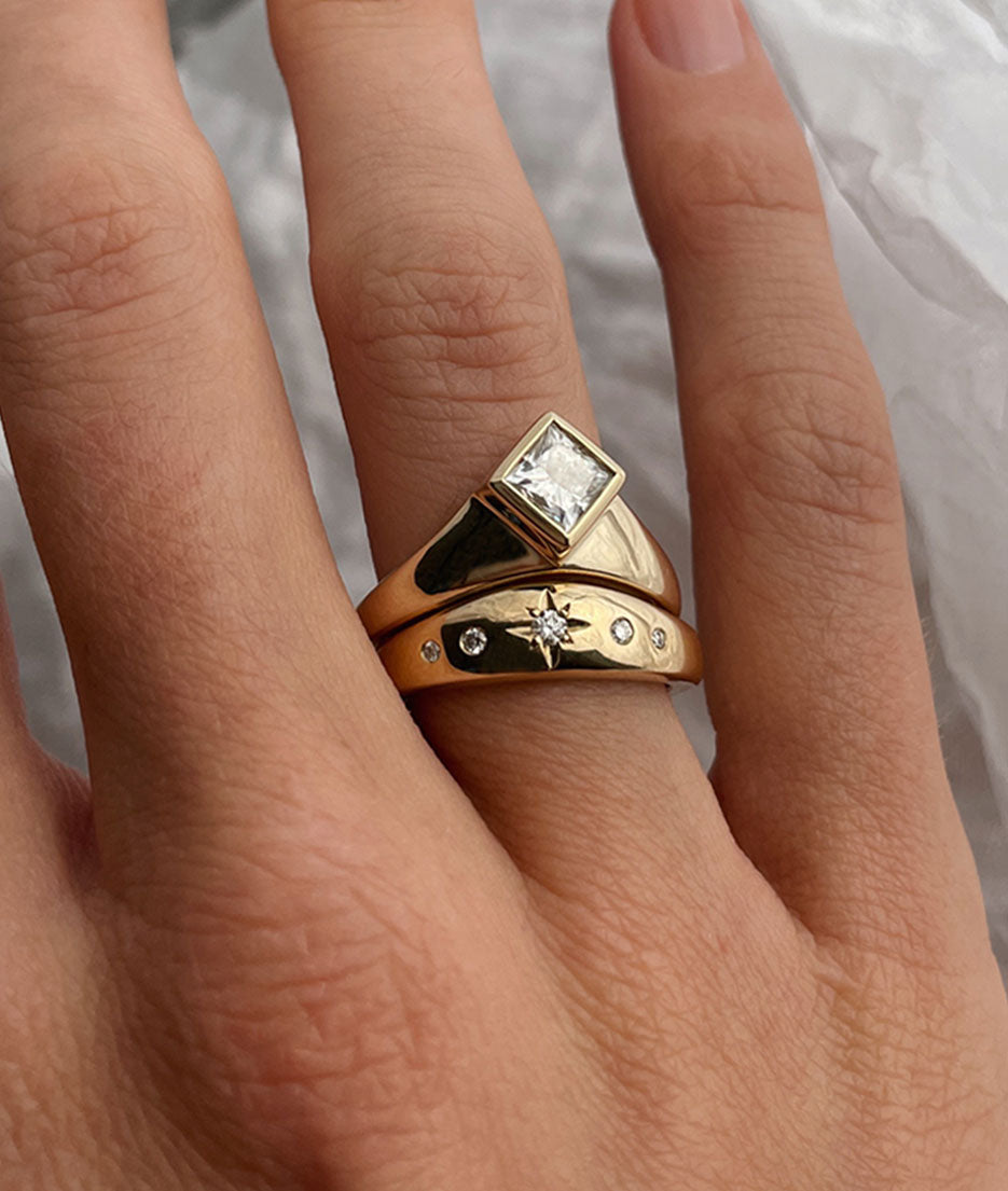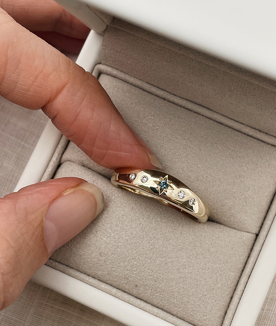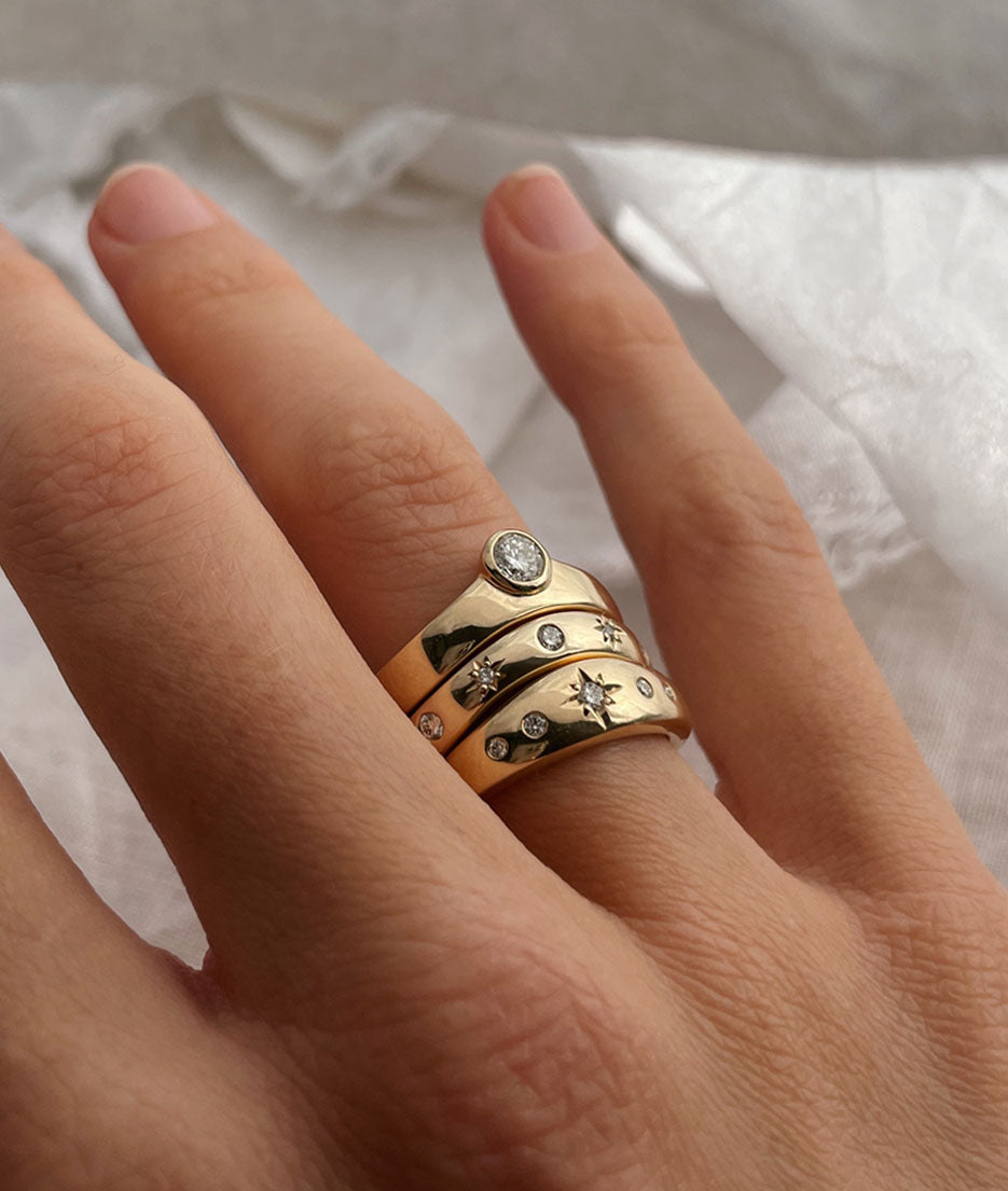 Stones: 2mm star set, 2 x 1.5mm + 2 x 1.25mm flush set natural Diamonds or select your favourite stones from the dropdown menu above