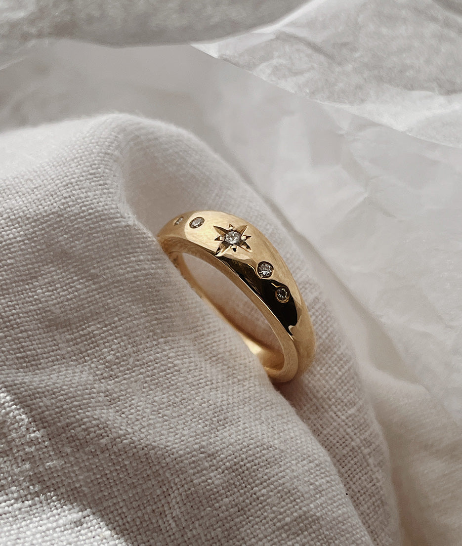 A high polished finish, the most common finish on jewellery, makes the surface of a special piece very shiny and reflective. As all of our special pieces are designed for daily wear, your ring will gain some fine little scratches over time. The mirror-like finish will wear to a natural worn finish as it develops its own patina. However, this can easily be re-polished to return your piece to its original shine.