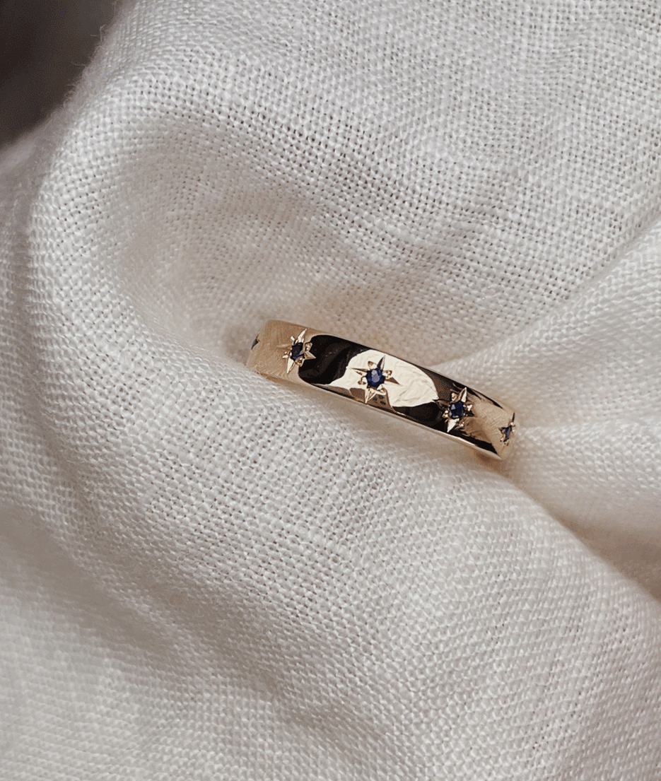 All of our pieces are made to order and we embrace and celebrate the subtle variations that make each item unique. Slight variations in band widths, thicknesses, and stone settings add to our organic style and are reflective of the hand finished nature of each piece.