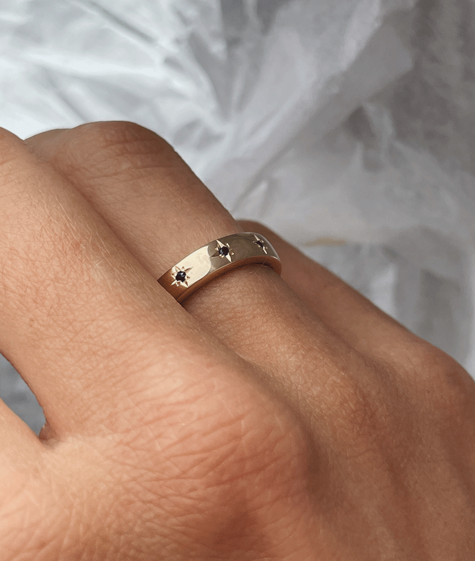 All of our pieces are made to order and we embrace and celebrate the subtle variations that make each item unique. Slight variations in band widths, thicknesses, and stone settings add to our organic style and are reflective of the hand finished nature of each piece