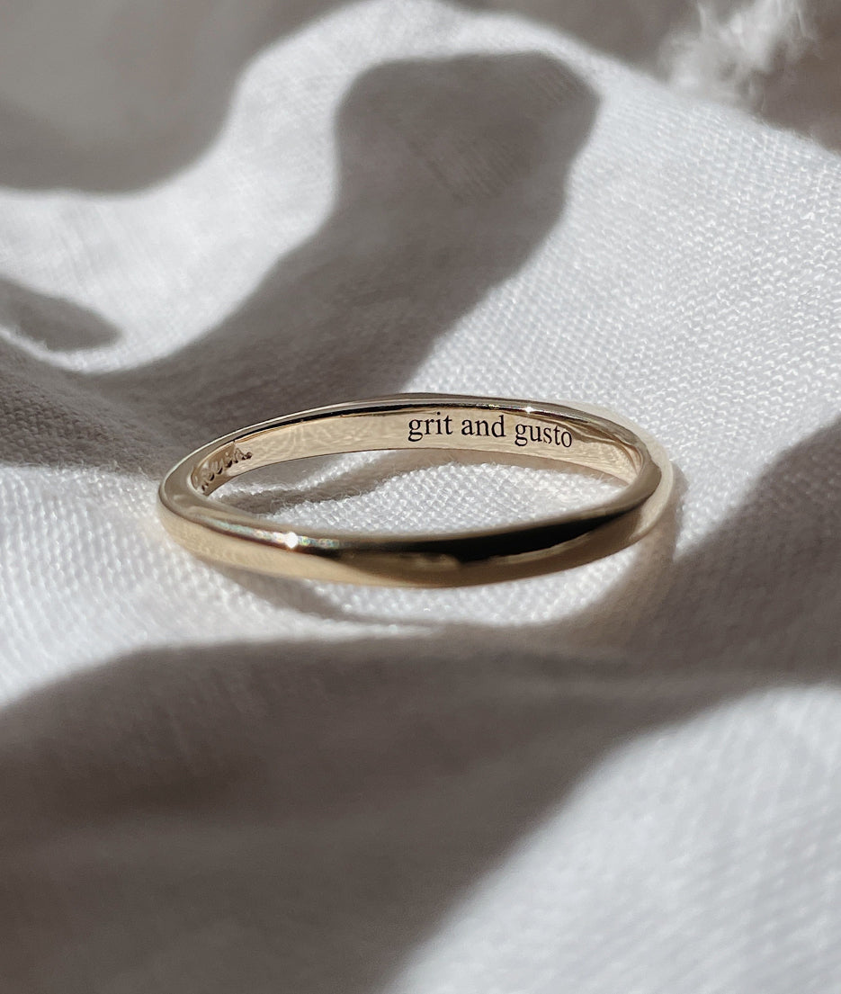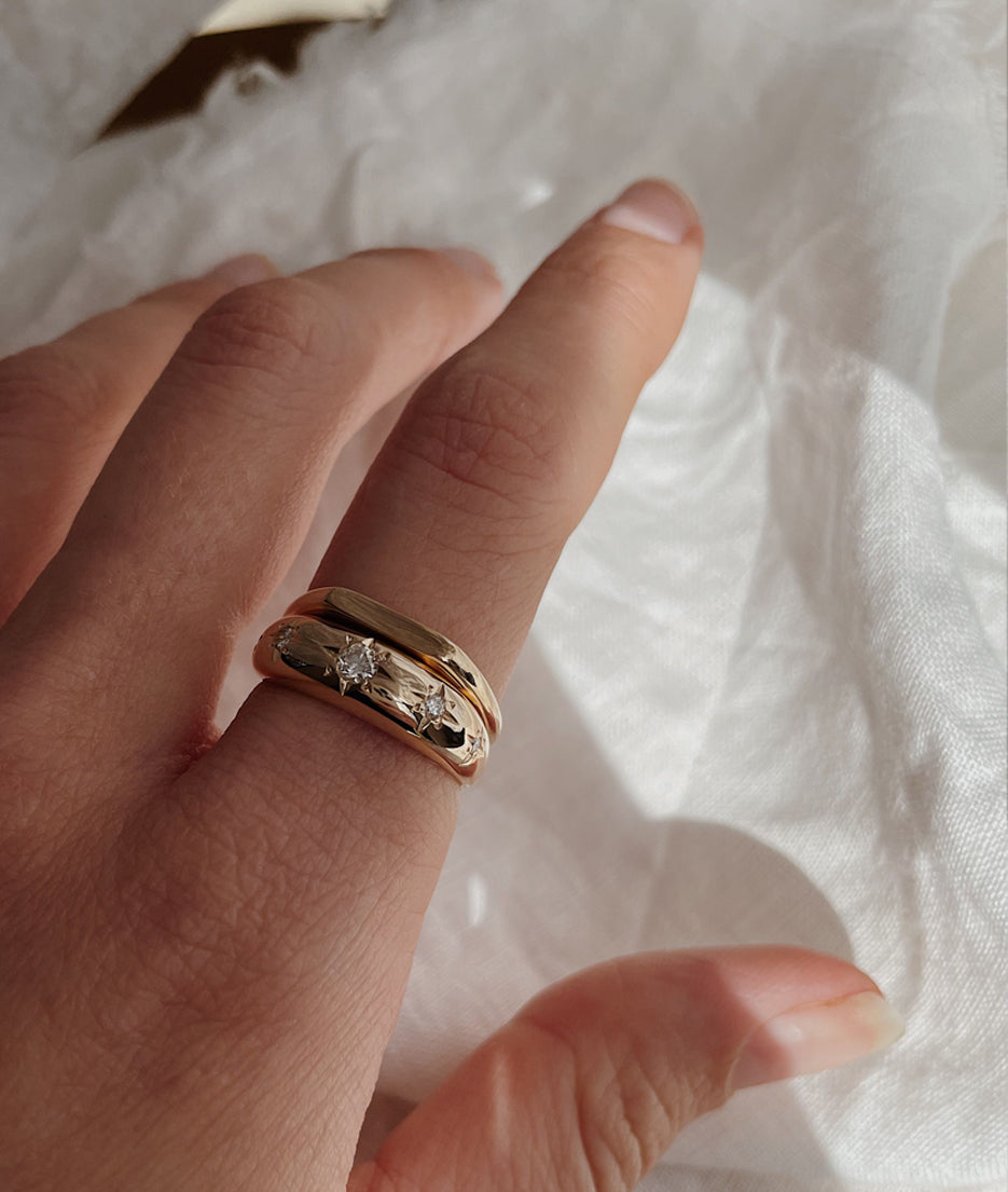 All of our pieces are made to order and we embrace and celebrate the subtle variations that make each item unique. Slight variations in band widths, thicknesses, and stone settings add to our organic style and are reflective of the hand finished nature of each piece