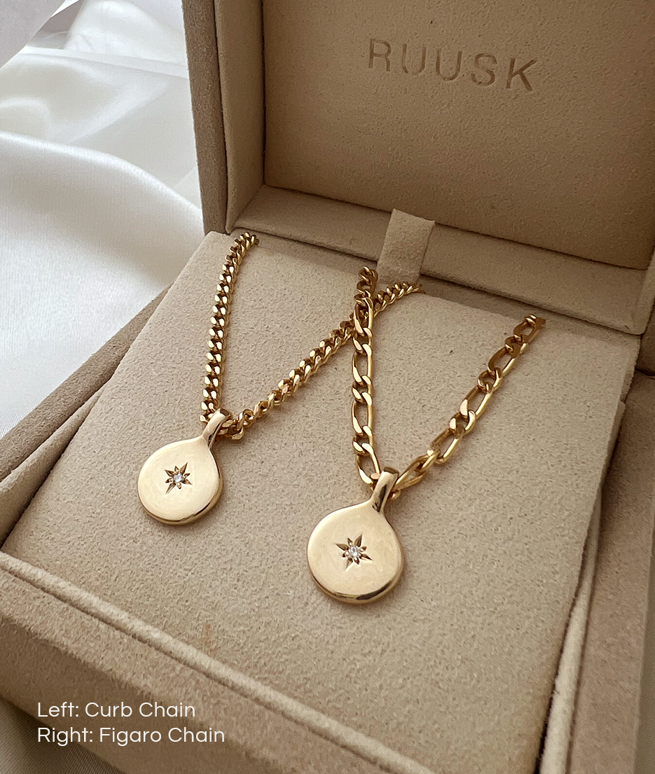 For pendants with our 2.5mm stone, as this is a thicker pendant we recommend pairing this with our Medium, Curb and Figaro chain.