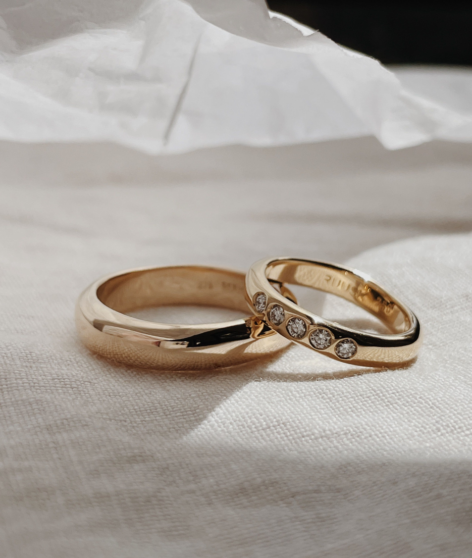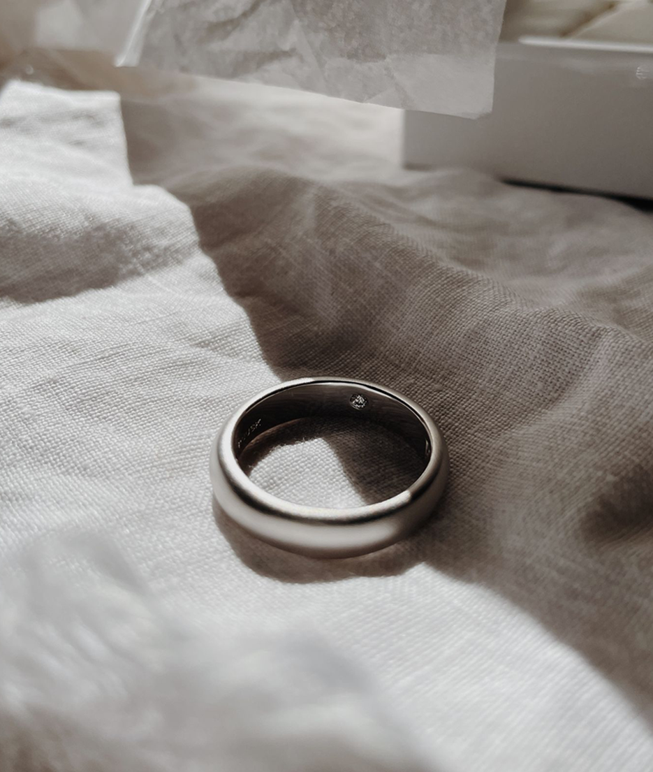 A high polished finish, the most common finish on jewellery, makes the surface of a special piece very shiny and reflective. As all of our special pieces are designed for daily wear, your ring will gain some fine little scratches over time. The mirror-like finish will wear to a natural worn finish as it develops its own patina. However, this can easily be re-polished to return your piece to its original shine.