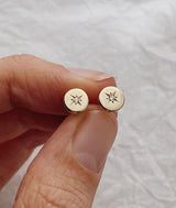 Hand carved True North stud earrings, cast in solid Gold